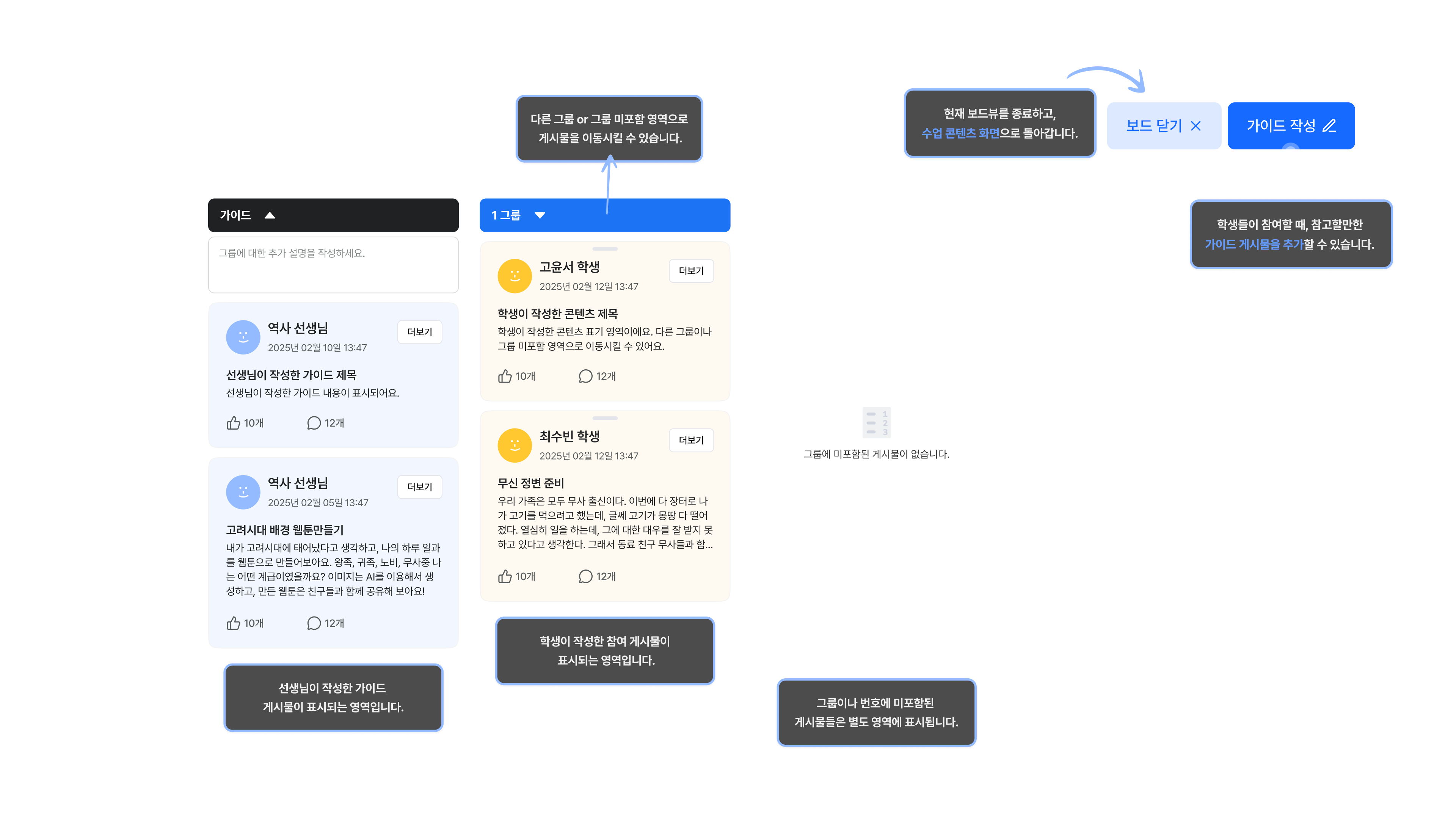 학생들은 생성된 가이드를 활용하여 더 쉽게 콘텐츠를 작성할 수 있습니다.