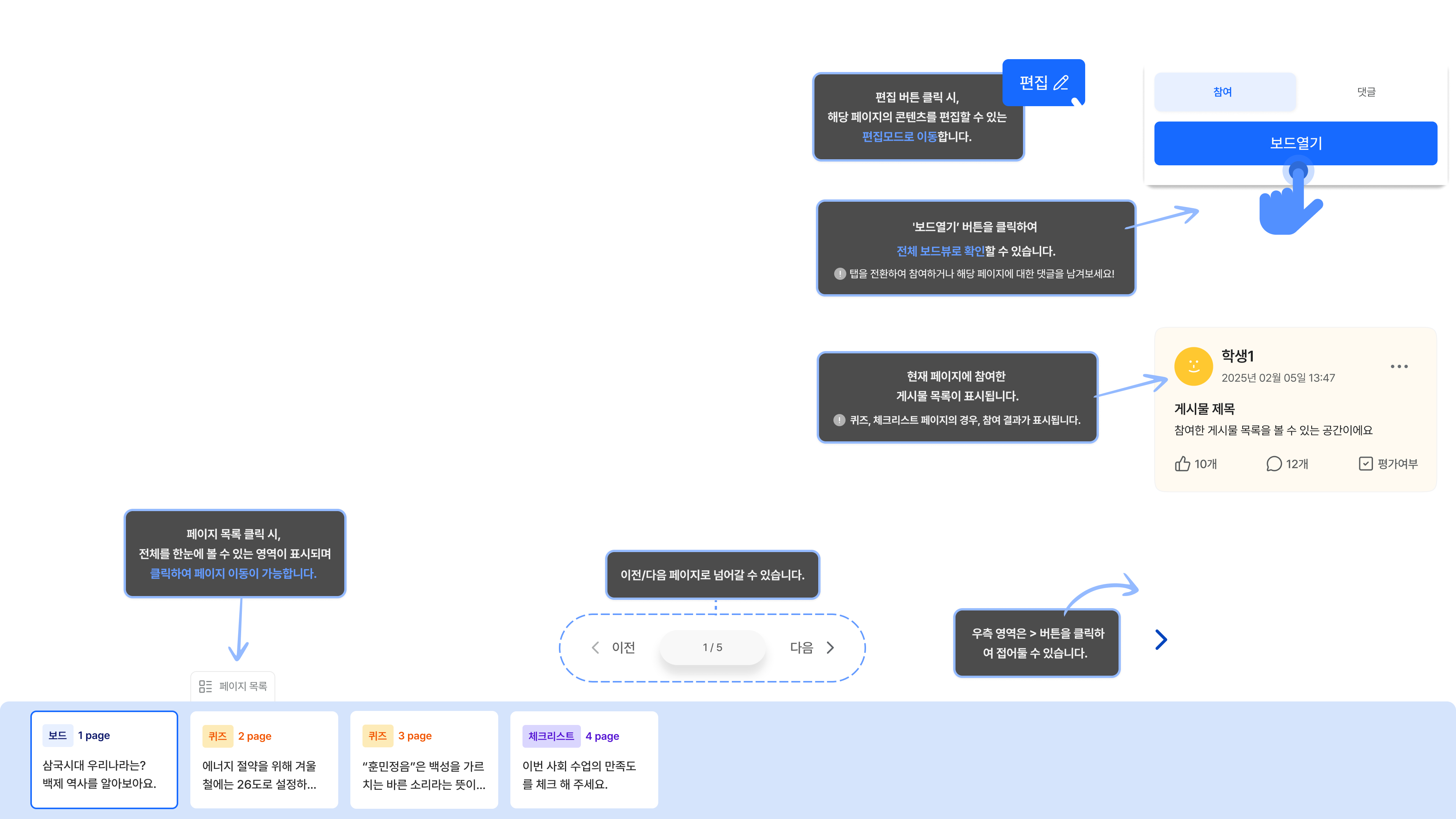 * 퀴즈(객관식/주관식) 콘텐츠로 수업을 구성할 수 있습니다.