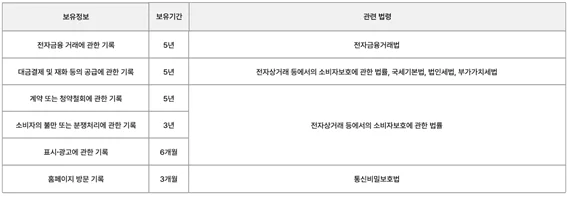 4) 기타 관련 법령에 따라 보유하는 경우